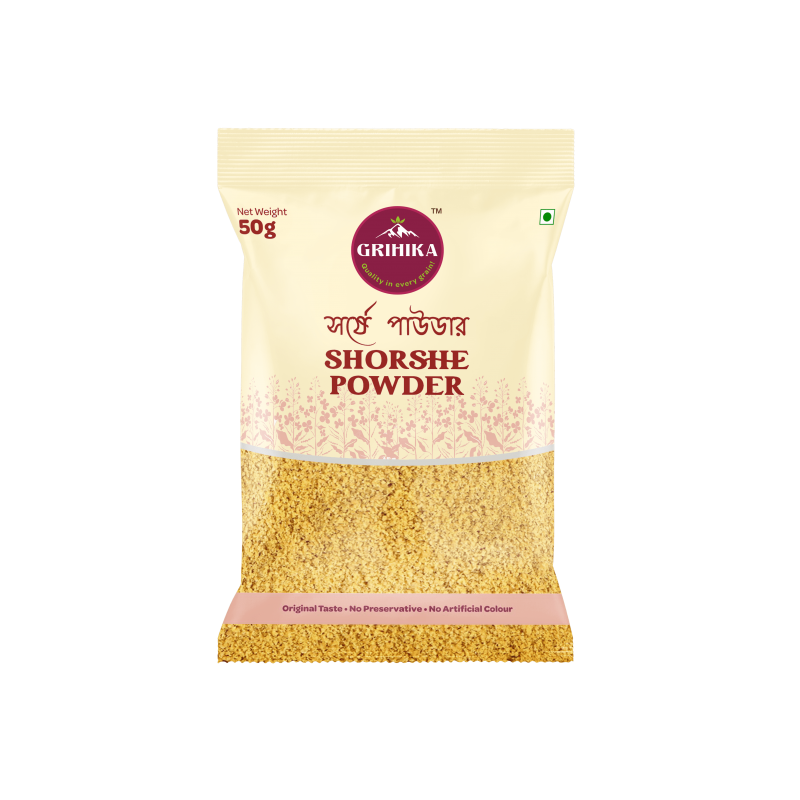 Grihika Shorshe Powder, (Yellow Mustard), is used to enhance taste across a many exquisite vegetarian and non- vegetarian dishes. It boasts of several health benefits like fights cancer, heals nerves, cures sore throats, strengthens hair and more.